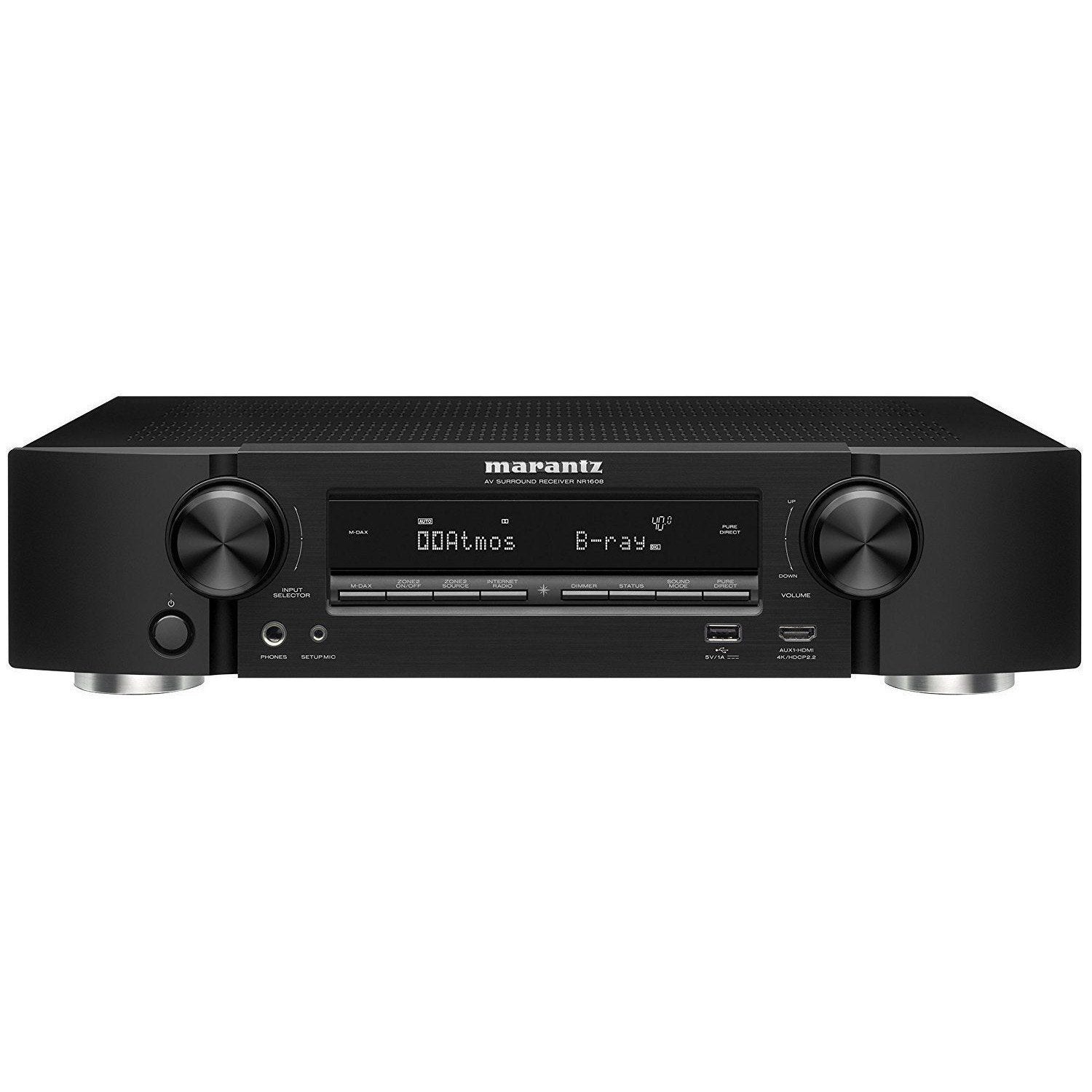 Un récepteur AV passionnant de haute qualité occupant un minimum d'espace : c'est le NR1608. Les amplificateurs de puissance discrets à courant élevé sur les 7 canaux offrent une puissance et une clarté étonnantes, et il offre un son surround 3D immersif grâce aux décodeurs Dolby Atmos et DTS:X, mais avec une hauteur d'un peu plus de 3 pouces, il est suffisamment mince pour se glisser dans n'importe quel meuble TV. Il est entièrement compatible avec les dernières spécifications HDMI et HDCP 2.2 sur les 8 entrées HDMI et transmettra tous les derniers formats vidéo – vidéo 4K 60 Hz, sous-échantillonnage 4:4:4 Pure Color, BT.2020, HDR et Dolby Vision – depuis les lecteurs Blu-ray, les décodeurs, les consoles de jeux et le contenu 4K Ultra HD diffusé/téléchargé sur un téléviseur ou un projecteur Ultra HD. Pour les futurs contenus diffusés HDR, le pass-through HLG (Hybrid Log Gamma) sera également pris en charge via une mise à jour du firmware.